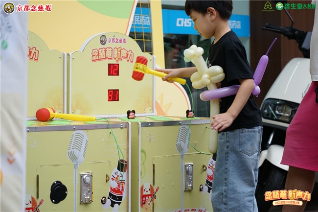 “一锤定音” 趣味挑战更是不分年龄,参赛小选手、陪同家长甚至路过的小朋友都积极参与,让整个活动充满了轻松愉悦的氛围。
